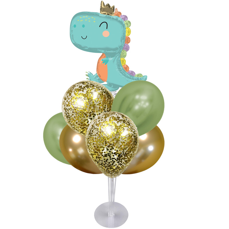 بادکنک و استند بادکنک مستر تم طرح کروم دایناسور پولکی پلاس بسته 8 عددی
