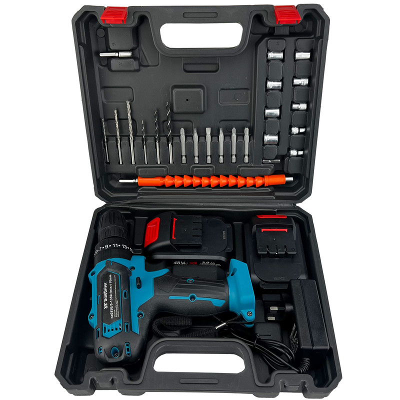 دریل چکشی شارژی 10 میلی متری 48 ولت باس  مدل 48VF مجموعه 25 عددی