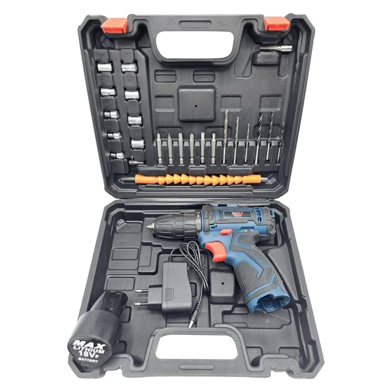 مجموعه 29 عددی دریل پیچ گوشتی شارژی صنعتی 10 میلی متری 18 ولت باس مدل 18V کد 2