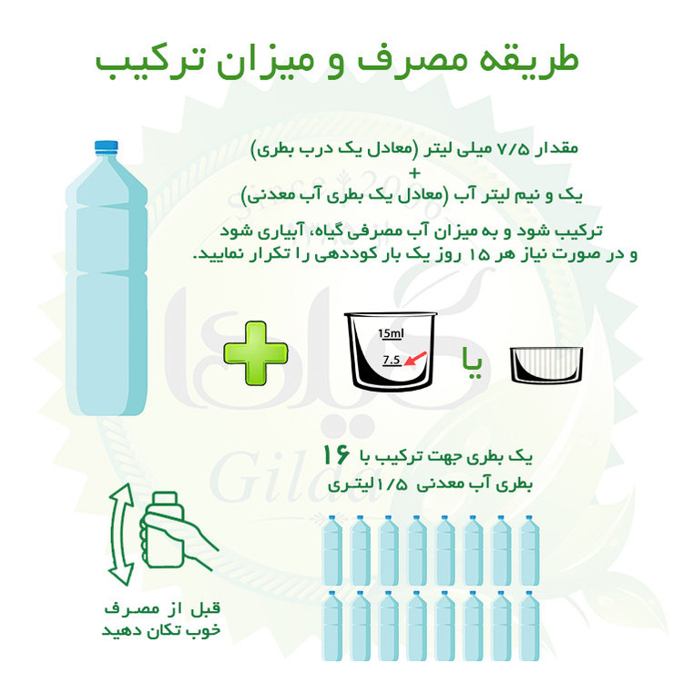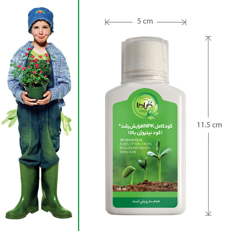درصد ترکیبات مواد تشکیلدهنده: N+P+K+B+Cu+Fe+Mn+Mo+Zn+Amino Acids