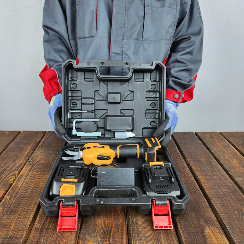 دارای دو عدد باتری 48 ولت می باشد حداکثر قطربرش 25 میلیمتر را دارد حداکثر قابلیت باز شدن تیغه 42 میلیمتر را دارد (نوک قیچی) باتری 4 آمپر ساعت می باشد قدرت برش عالی دارد دارای ضامن ایمنی می باشد به همراه روغن دان، آچار آلن، آچار تعویض تیغه و سنگ نفت عرضه می گردد کیف حمل دارد.