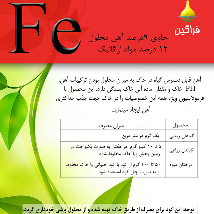 کود آهن پودری 9% فراگین مدل Fe22 وزن 500 گرم