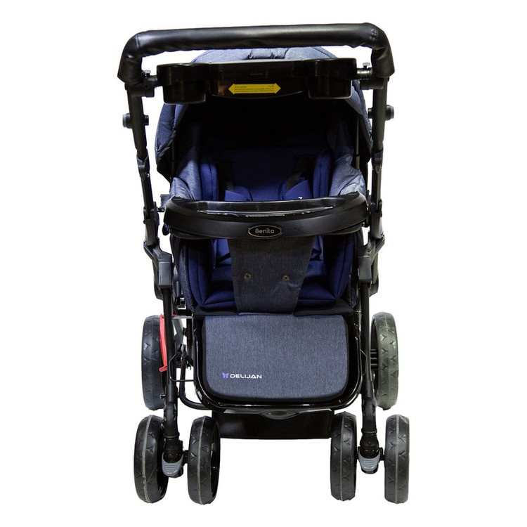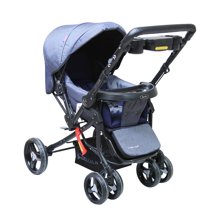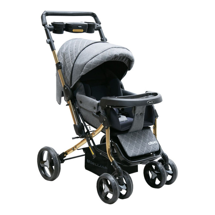 - دارای جای لیوان - دارای سبد خرید - دارای جلو پایی - قابلیت رو به مادر شدن - دارای ترمز چرخهای جلویی
