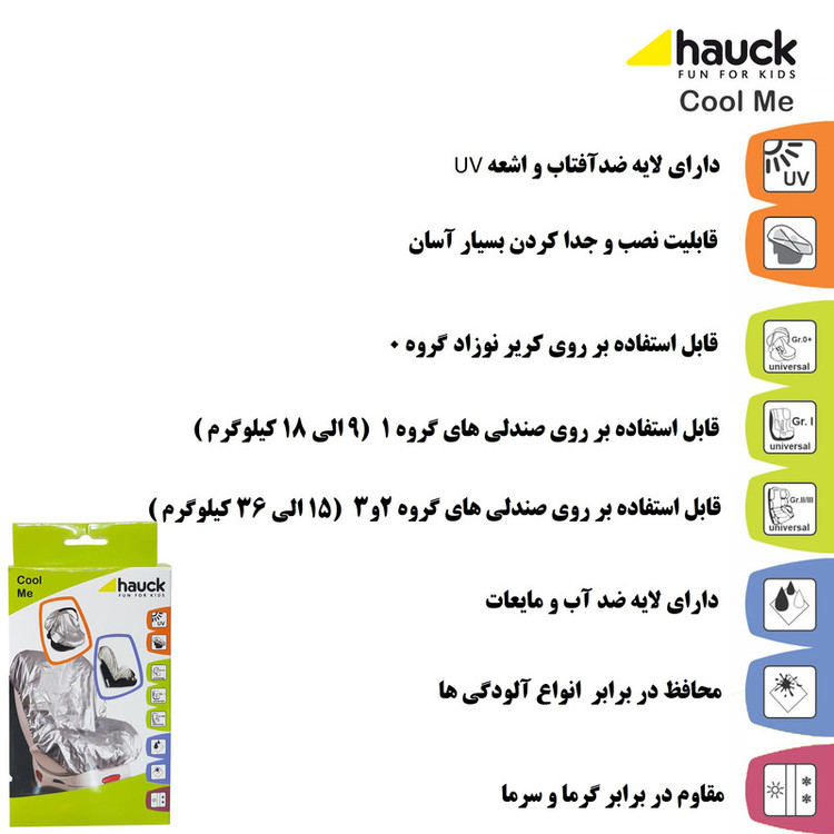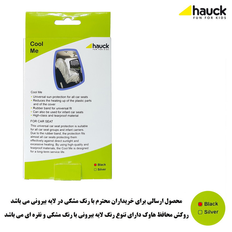 صندلی خودرو کودک دیگر به عنوان یکی از ملزومات مهم برای خانواده هایی که دارای فرزند نوزاد خردسال هستند در آمده است. این صندلی با توجه به اهمیتی که در حمل و نقل و ایجاد راحتی برای نوزاد دارد می بایست به خوبی نگهداری شود .از طرفی قیمت نسبتا بالای انواع صندلی خودرو کودک نیز کوشش برای نگهداری بهتر از آن را لازم می کند. یکی از آسیبهایی که برای صندلی های خودرو کودک وجود دارد،قرار گرفتن آن در معرض تابش مستقیم نورآفتاب است. برای جلوگیری از این اتفاق شرکت هاوک محصولی پیشنهاد داده است. کاور صندلی خودروی کودک هاوک مدل Cool Me hauck 61834 مخصوص استفاده برای محافظت از صندلی کودک می باشد. این محصول که دارای لایه ضد اشعه آفتاب میباشد با کاور کردن صندلی کودک در مقابل تابش آفتاب باعث جلوگیری از بورشدن و پارگی روکش پارچه ای وقسمت های پلاستیکی صندلی کودک و آسیب به صندلی کودک شده و در نهایت باعث دوام بیشتر میشود وهمچنین با جلوگیری کردن از ورود و نشستن گرد و خاک بر روی صندلی مانع از ایجاد حساسیت و آلرژی برای کودک میگردد