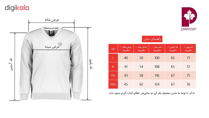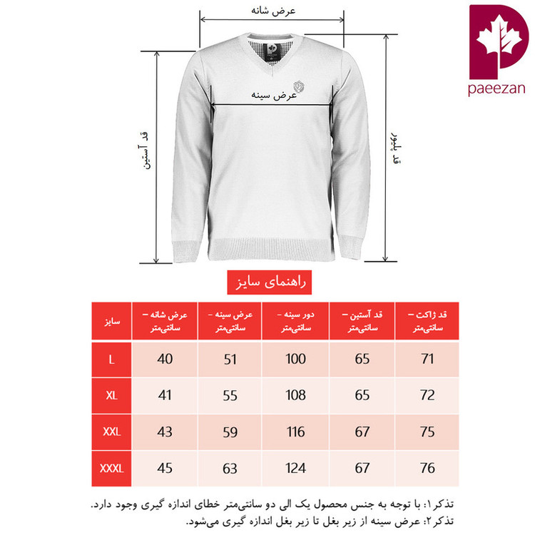 اندازه لباس برای سایز S : - قد لباس برابر با 67 سانتیمتر - دور قفسه سینه برابر با 100 سانتیمتر - عرض سرشانه برابر با 42 سانتیمتر - قد آستین برابر با 68 سانتیمتر