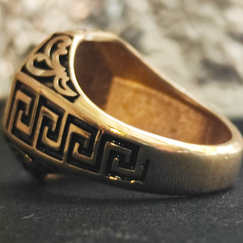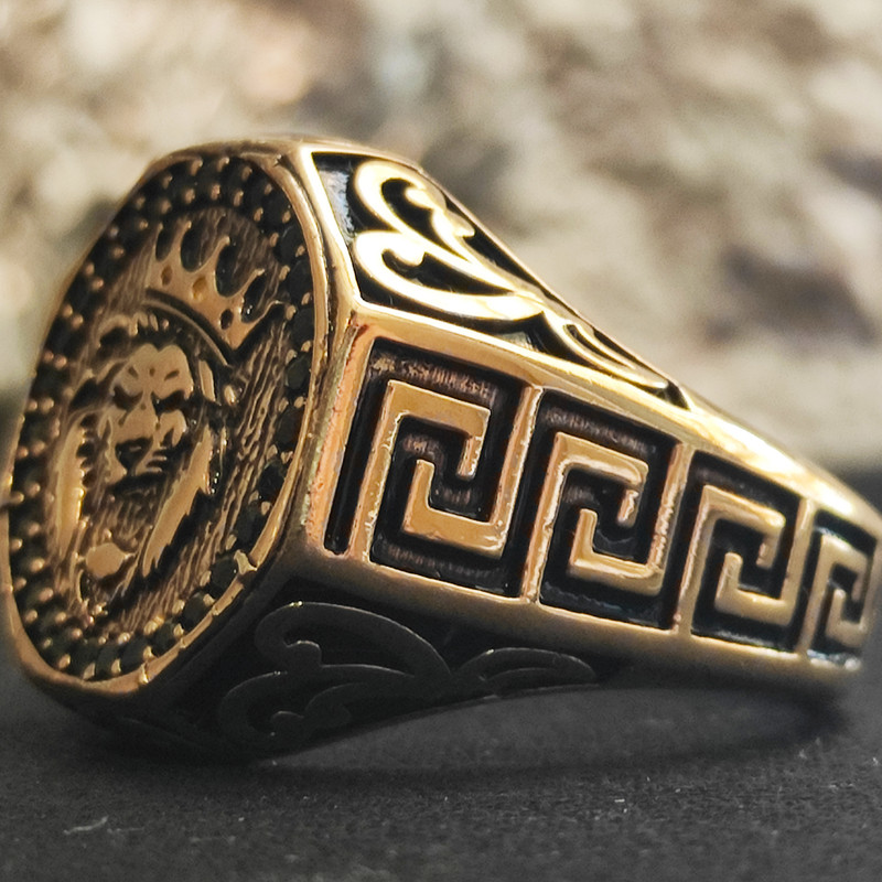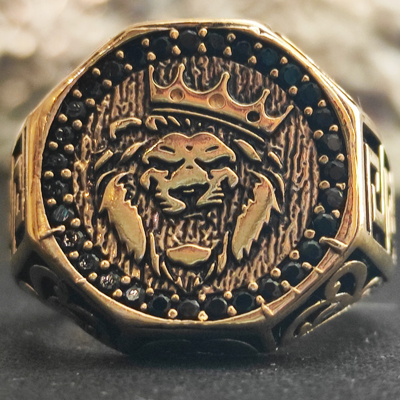 این انگشتر طرحی از شیر دارد و ترکیب آلیاژهای مس و روی بدست می آید و با تکنولوژی دستگاههای پیچیده ای بصورت طلا آبکاری شده و رنگ آن ثابت است و زیبایی خاصی به انگشتان دست میدهد