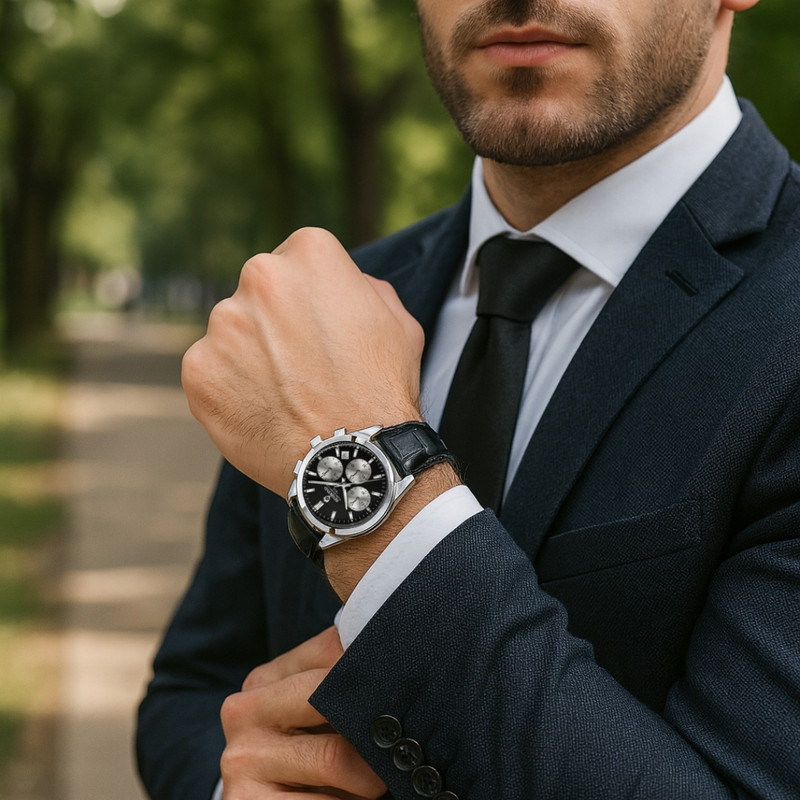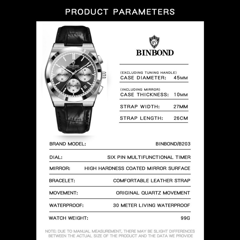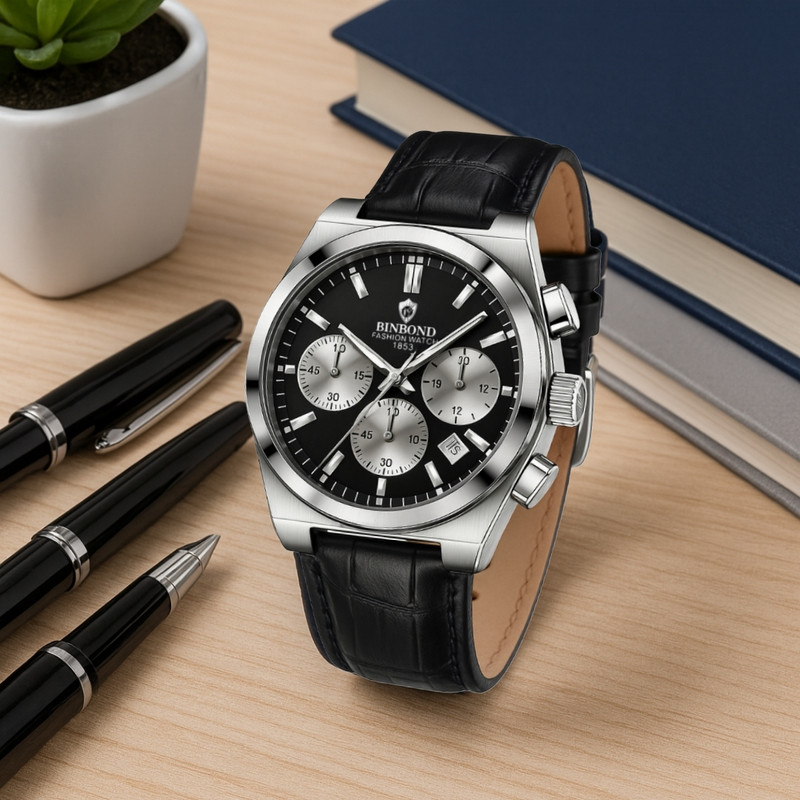 ساعت مچی عقربه‌ای کوارتز مردانه بین باند مدل اسپرت لوکس سه موتور فعال کرنوگراف بند چرم کد J3