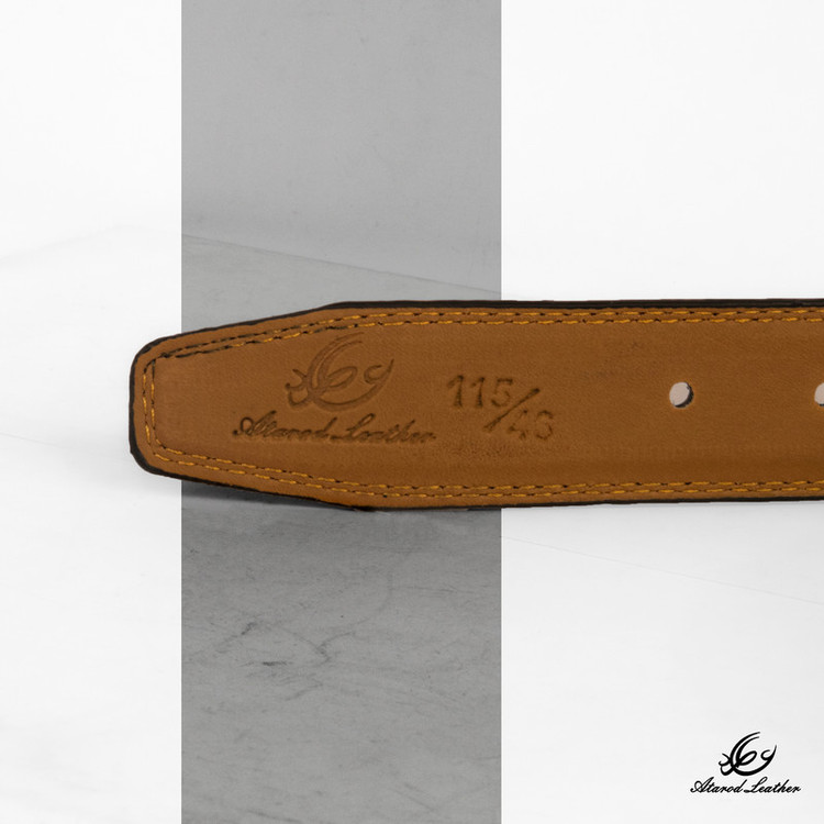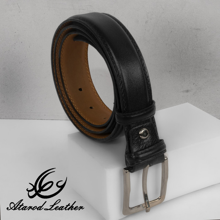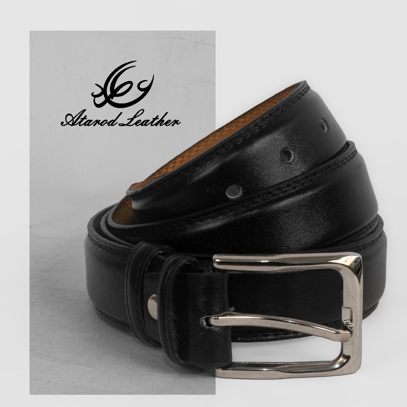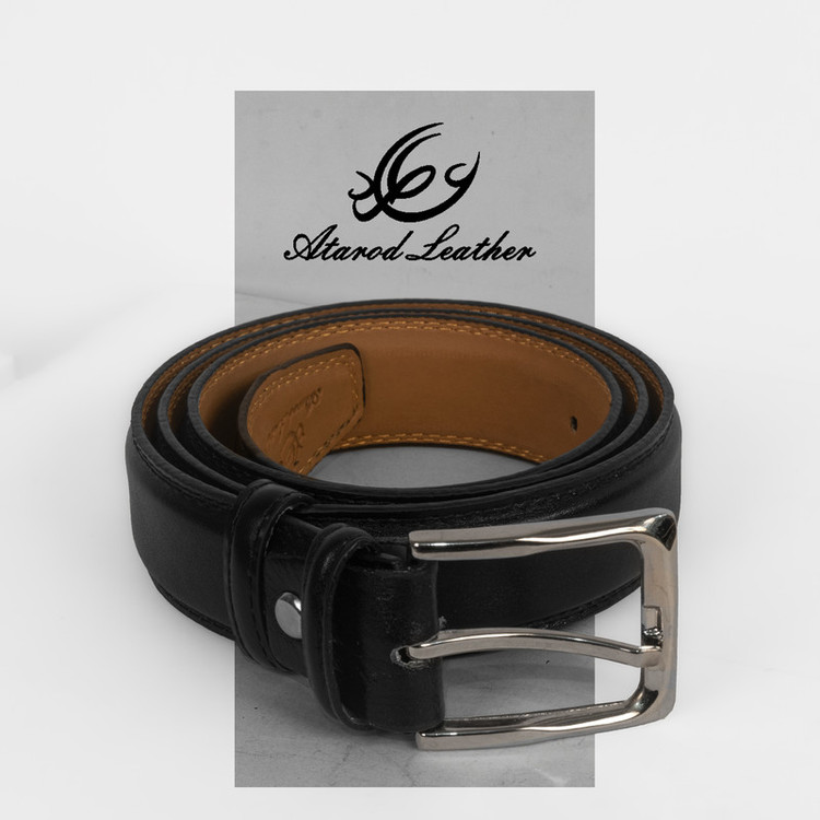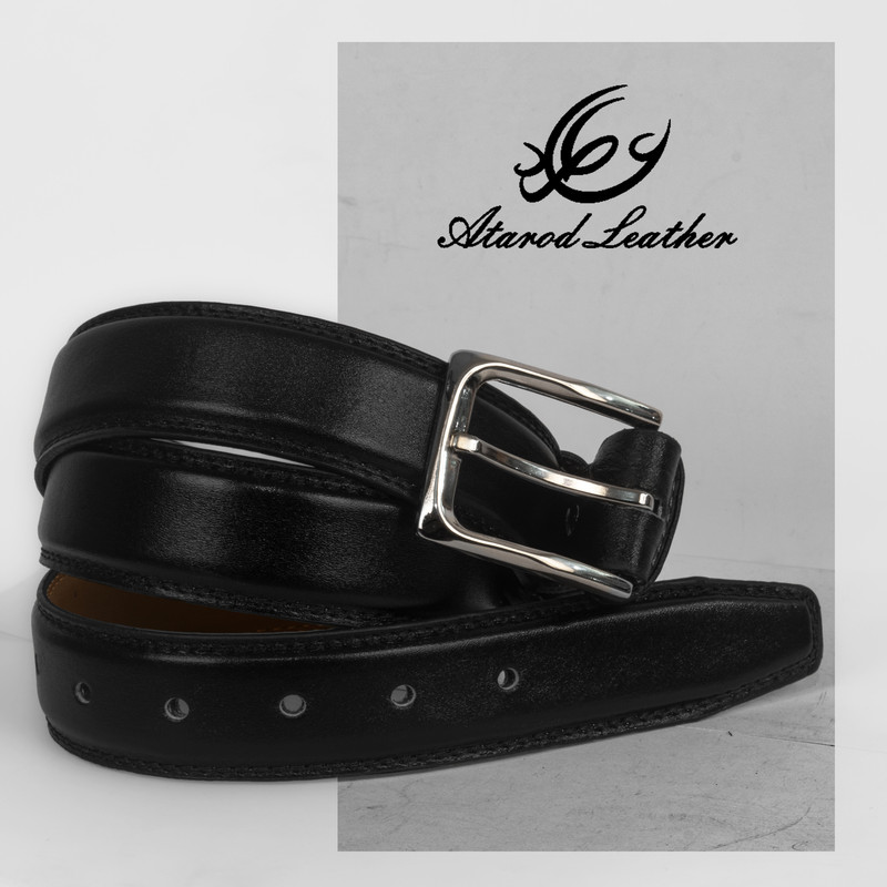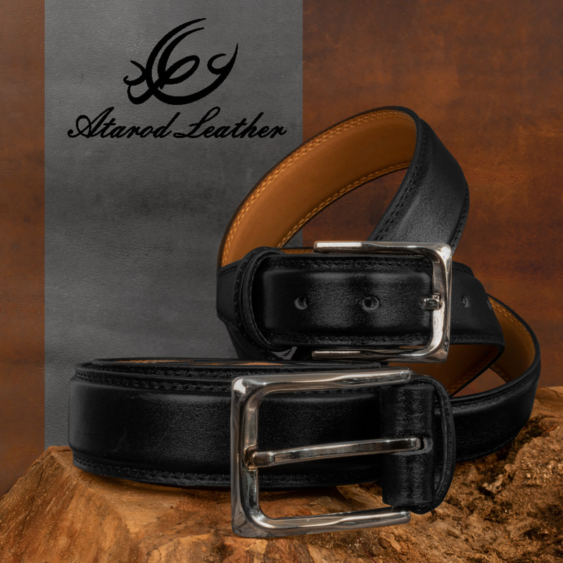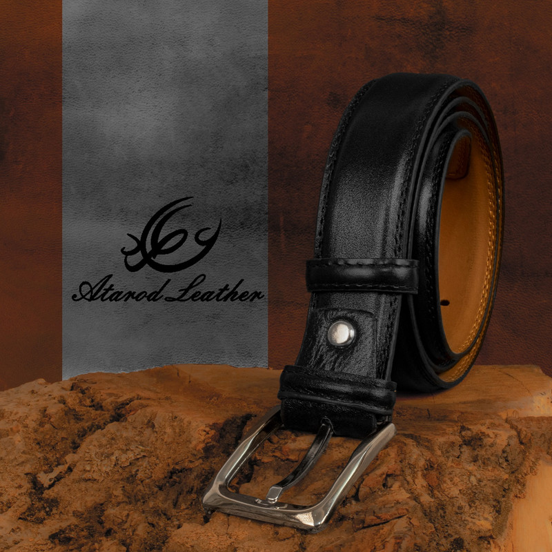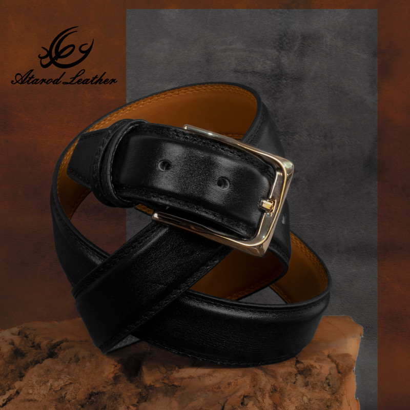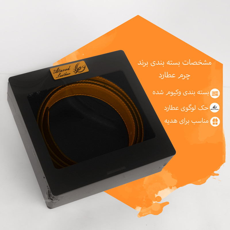 چرم طبیعی گاوی برند چرم عطارد بسته بندی چوبی وکیوم شده با حک نام و لوگو برند رسمی چرم عطارد قابل تنظیم برای انواع سایز دور کمر رنگ مشکی مناسب برای هدیه