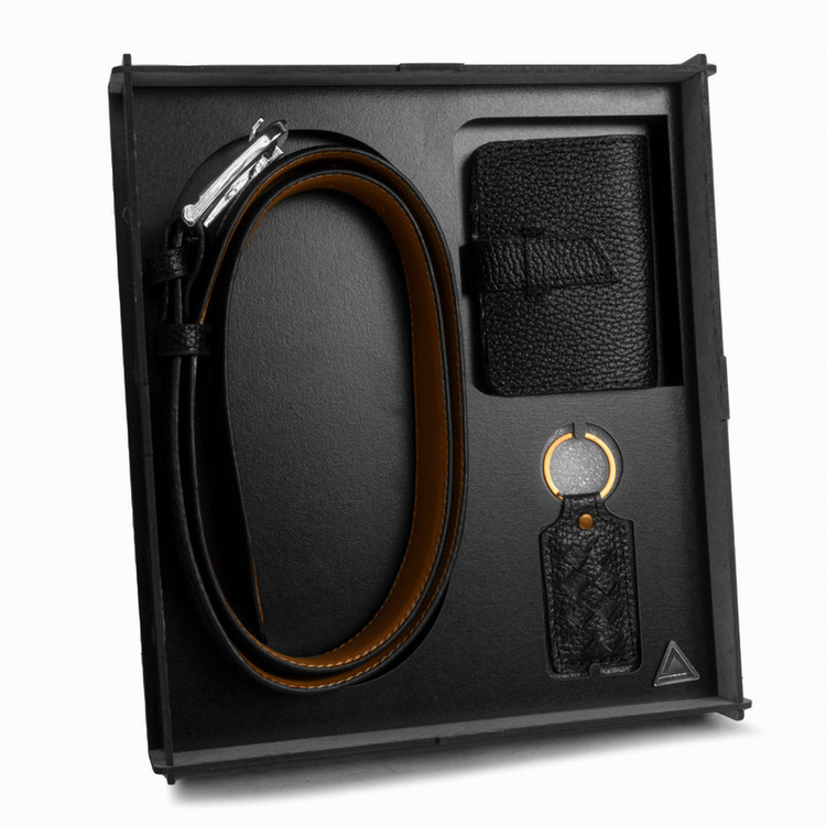 بسته بندی هدیه اختصاصی برند ثبت شده آراهمراه تمام چرم طبیعی گاوی فلوتر برند ثبت شده چرم آراهمراه ست هدیه شامل بسته بندی هدیه، کمربند، جاکارتی و جاکلیدی بافت طراحی و تولید توسط هنرمندان مجموعه چرم آراهمراه