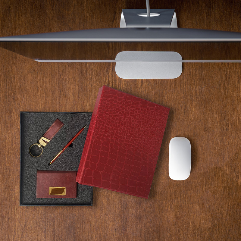 اقلام همراه این ست شامل:جا کارتی مگنتی،خودکار کمر پیچ تاچ دار و جا کلیدی میباشد.