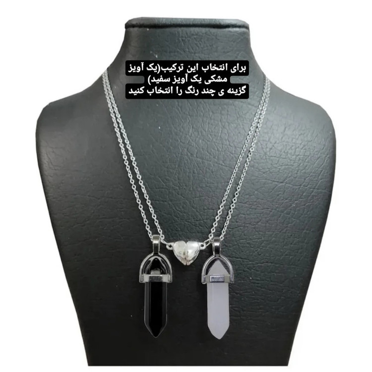 در صورت انتخاب گزینه ی چند رنگ یک آویز مشکی خواهد بود و آویز دیگر سفید، در گزینه های دیگر هر دو آویز هم رنگ خواهند بود
