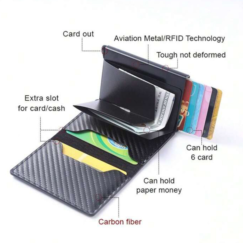 - ضد ضربه - دارای جای بیش از 8 عدد کارت - دارای جای قرار گیری پول نقد و یا کاغذ - ضد سرقت ( کسر بی اجازه پول از کارت های درون جاکارتی )