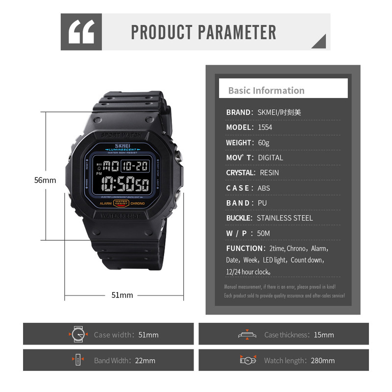 نمایش 24 ساعته , نمایش ساعت دوم , آلارم , نور پسزمینه , تاریخشمار , ضدآب