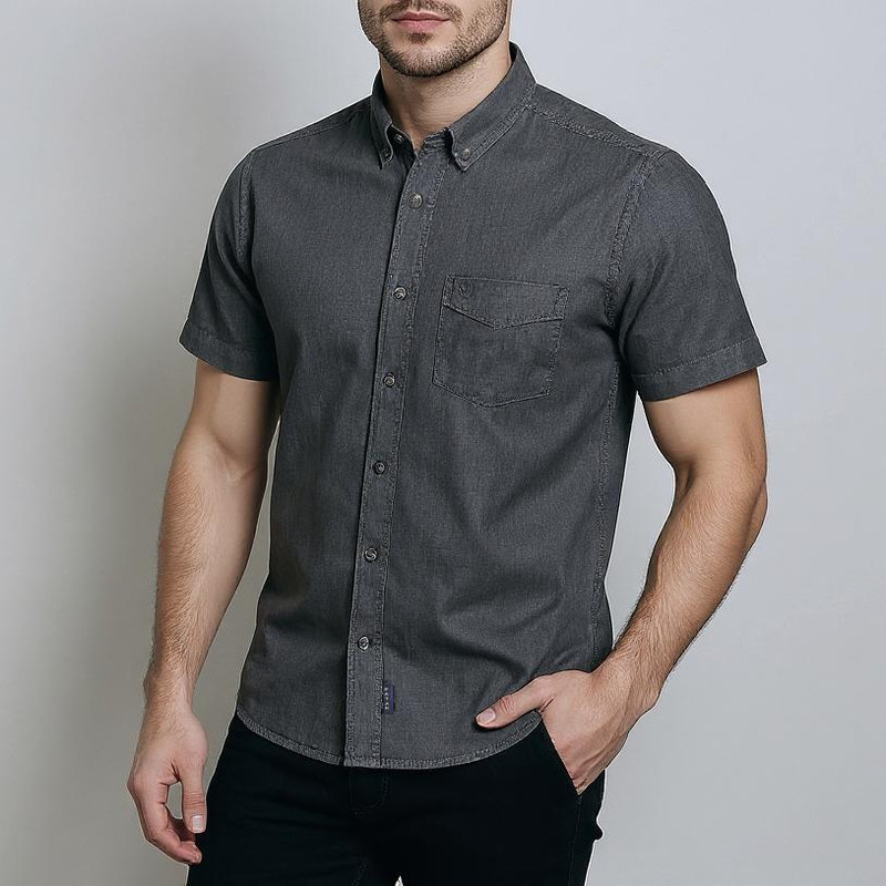 صد در صد کتان / زیر دست بسیار لطیف / استایل کلاسیک / یقه برگردان / دارای تک جیب / آستین کوتاه / رنگ ذغالی