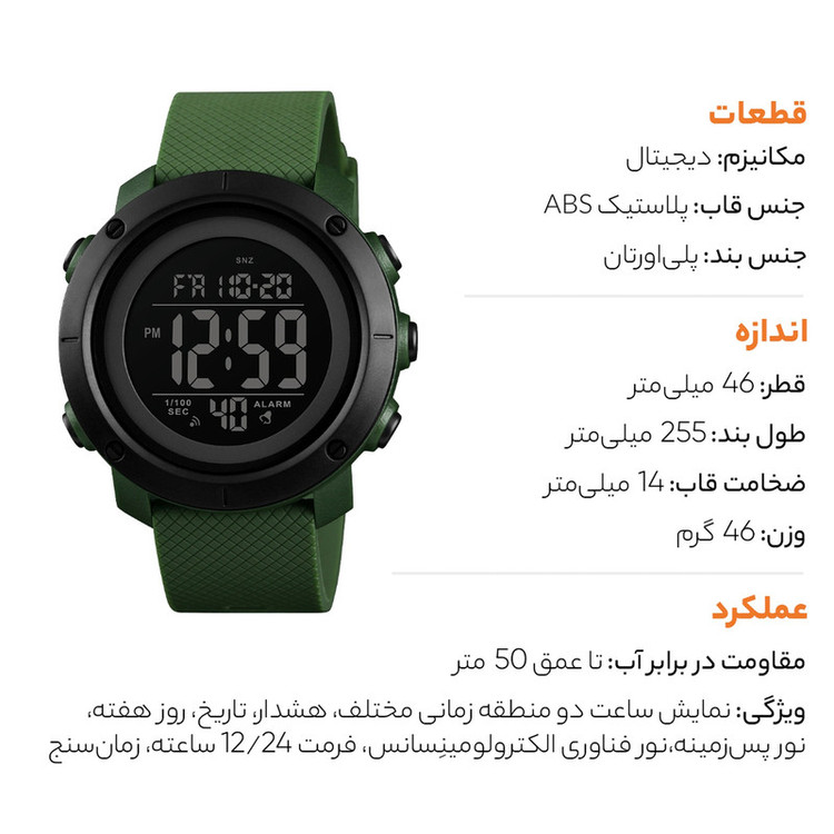 نور پسزمینه , نمایش ساعت دوم , آلارم , تاریخشمار , نمایش 24 ساعته