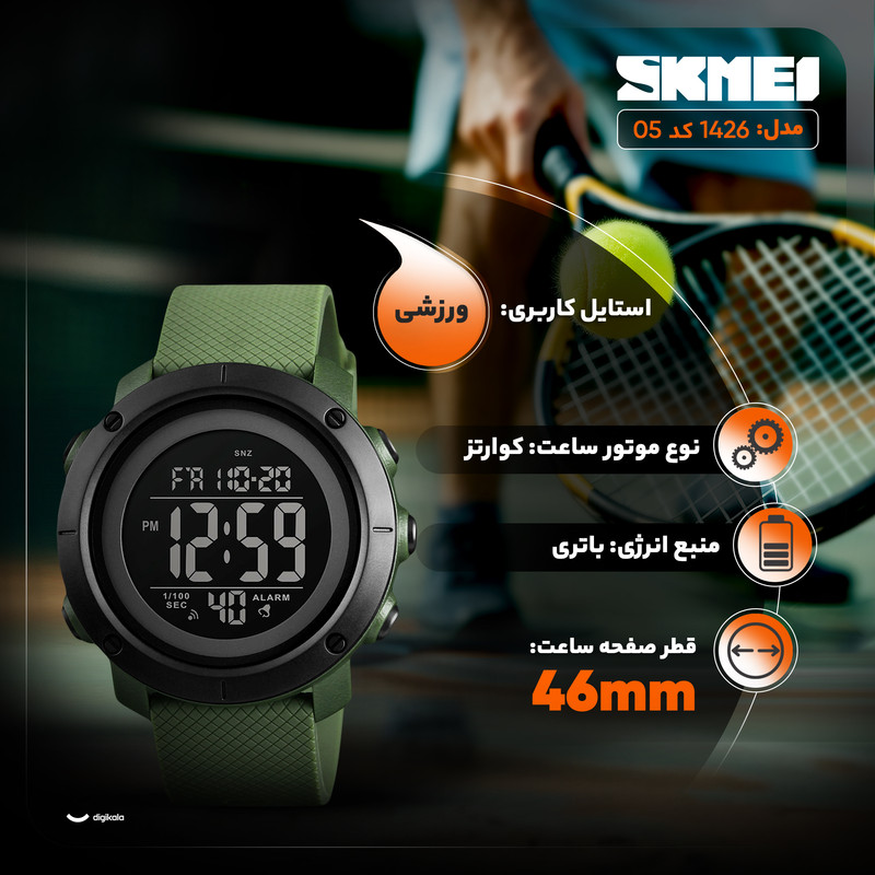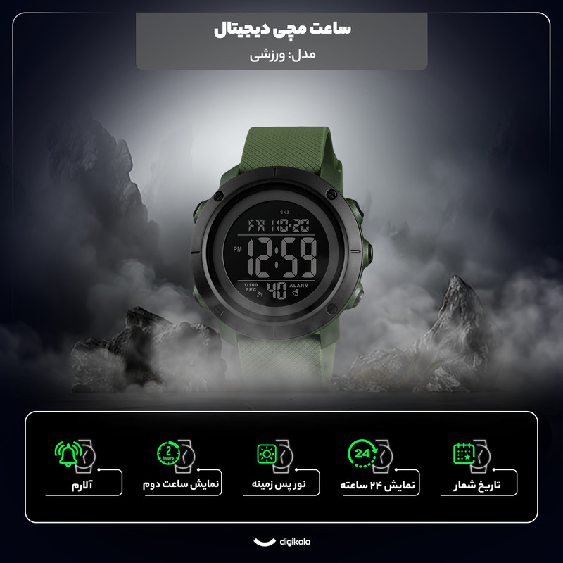 نور پسزمینه , نمایش ساعت دوم , آلارم , تاریخشمار , نمایش 24 ساعته