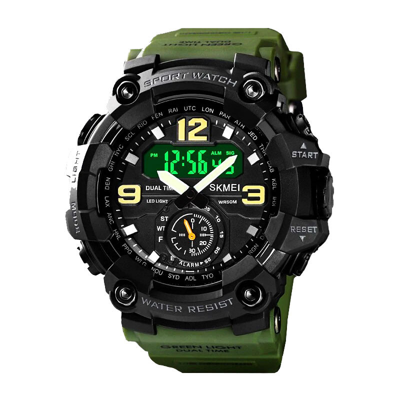 سایر توضیحات : از قابلیت های این ساعت میتوان به ضد آب تا عمق 50 متر , کرنومتر , شمارش معکوس , آلارم , نمایش 12/24 ساعته , نمایش همزمان سه زمان مختلف , چراغ صفحه , تقویم .... اشاره کرد.