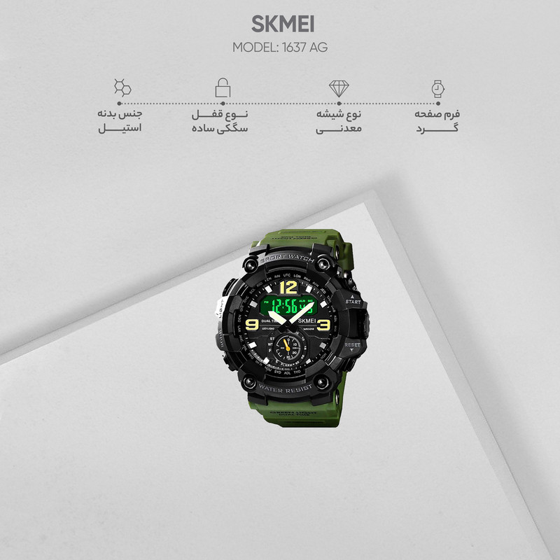 قابلیتهای تخصصی ساعت : نمایش 24 ساعته , نمایش ساعت دوم , تاریخشمار , نور پسزمینه , تایمر , آلارم