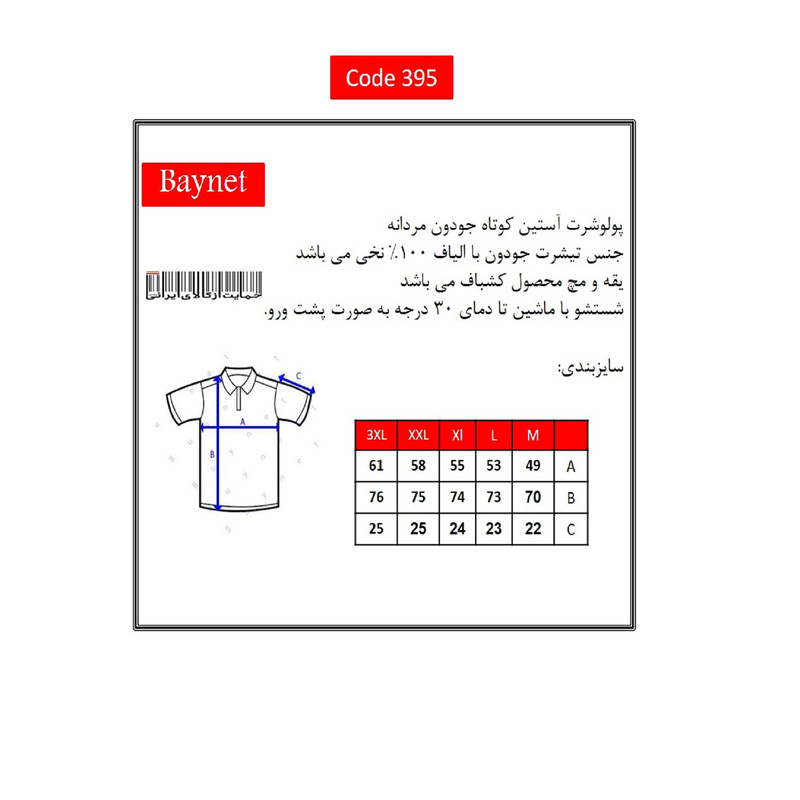 - دارای دو دکمه در قسمت یقه - دارای طرح لوگو برند روی سینه - قد پشت لباس برای سایز L برابر با 75 سانتی متر