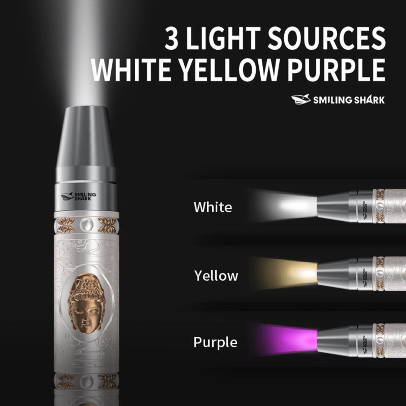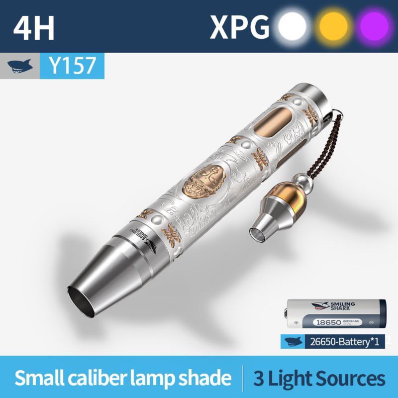 چراغ قوه یووی Y15+ اسمالینگ شارک یکی از محصولات جدید و خاص محسوب می شود. یکی از مهمترین ویژگی های چراغ یووی مدل Y15+ تعداد 3 لامپ بودن آن در حالت نور سفید، زرد و یووی میباشد. این محصول از یک چراغ با نور سفید با برد 130 متر و میزان روشنایی 200 لومن و لامپ یووی با طول موج 395 نانومتر و یک نور زرد بهره میگیرد حال اگر اهل سفر و به دل طبیعت و گشت و گذار هستید. چراغ UV مدل Y-15+ گزینه مناسب برای کمپینگ و طبیعت گردی است. وجود چراغ یووی برای تشخیص سنگ های معدنی ، شکار عقرب در شب،پیدا کردن طعمه های ماهیگیری کاربرد بسیاری دارد. این چراغ شگفت انگیز از یک باتری با ظرفیت 2200 میلی آمپر برای مدت زمان نوردهی 4 ساعت بهره می برد.