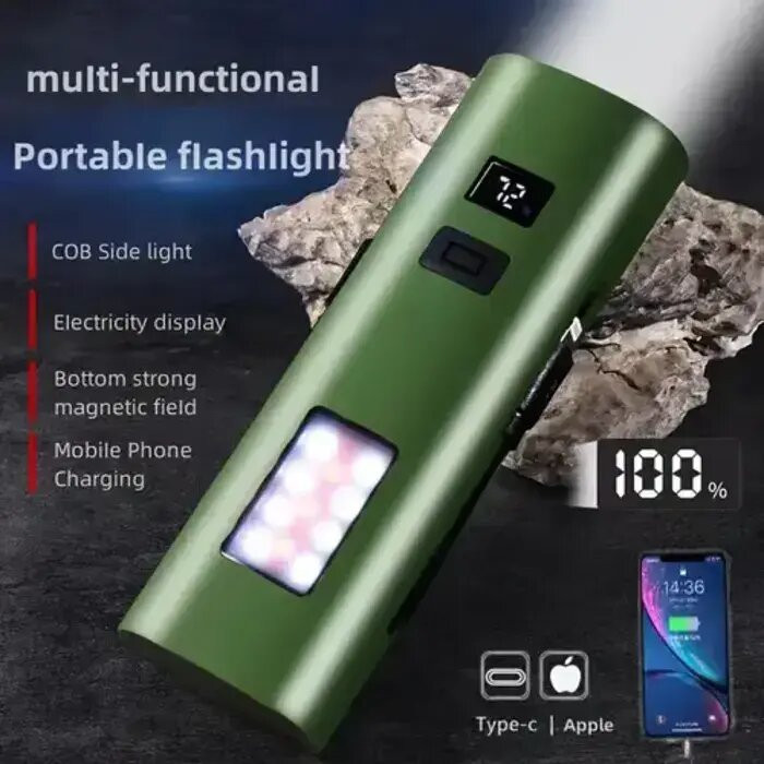 چراغ قوه چند کاره دیپ کینگ مدل DP-748 چندین قابلیت را بصورت همزمان میتواند در اختیار شما قرار گذارد . همزمان میتواند بصورت چراغ قوه و پاور بانک عمل کند که با اسفاده از درگاه usb تایپ c و آیفون تلفن همراه شما را شارژ کند.