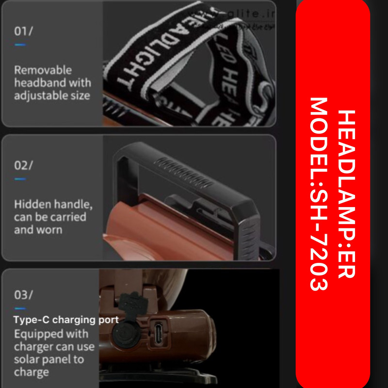 چراغ پیشانی ای آر مدل SH-7203 با نور مهتابی