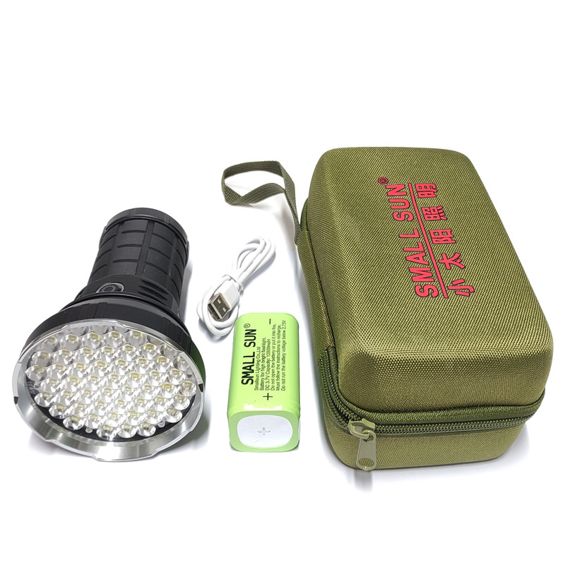 چراغ قوه اسمال سان مدل W5203 دارای 55 عدد لامپ LED بسیار قوی از مدل T40 میباشد که 3 حالت نوردهی با رنگ نور مهتابی را مهیا می سازد. سه حالت نوردهی ان شامل پر نور کم نور و نور متوسط و حالت چشمک زن است. در همه ی این حالت ها قدرت روشنایی چراغ قوه تغییر میکند به صورتی که در حالت پر نور قدرت روشنایی 7000 لومن، نور متوسط 4000 لومن و نور کم 1000 لومن میباشد.