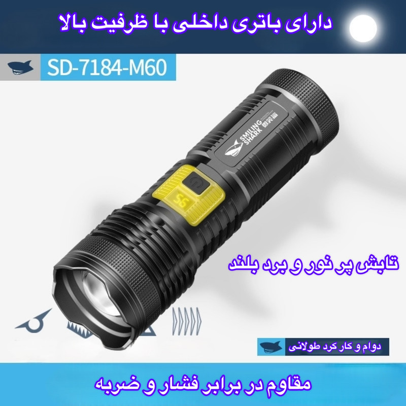 چراغ قوه دستی اسمایلینگ شارک مدل SD-7184-M60 با نور مهتابی