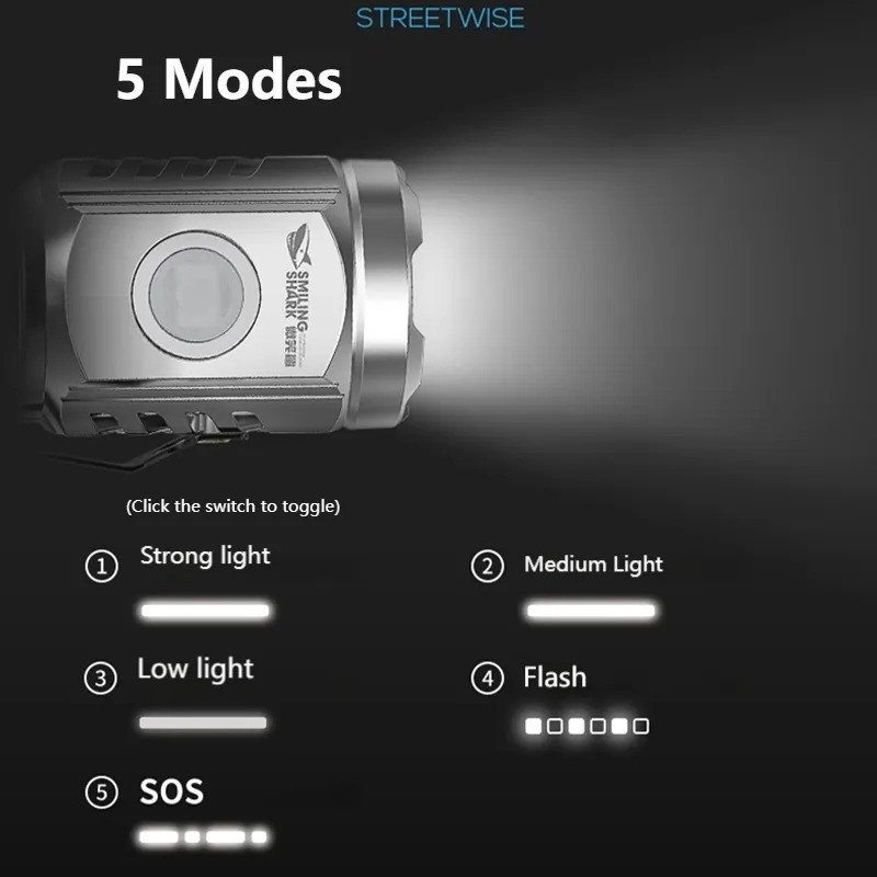 دم چراغ قوه مجهز به دستگاه جذب مغناطیسی قوی است که می تواند به راحتی بر روی سطح اکثر فلزات آهن جذب شود و کار شما را راحت تر کند. چراغ قوه قابل شارژ دارای باتری لیتیومی داخلی است و با شارژ مستقیم USB قابل شارژ است. عمر باتری آن طولانی است و با انواع دستگاه های شارژ سازگار است. باتری با ظرفیت زیاد می تواند یک پرتو نور طولانی مدت، راندمان شارژ بالا را ارائه دهد و قابل اطمینان تر و ایمن تر است. این چراغ قوه شارژی اسمایلینگ شارک مدل SD-1033 دارای طراحی 5 حالته و 3 هسته LED با روشنایی بالا برای روشنایی قابل انطباق در همه حالات است.