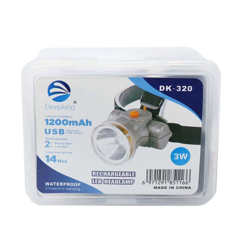 چراغ واترپروف پیشانی دیپکینگ مدل DK-320 یکی از مدل های با کیفیت و کارا است که دارای برد طولانی میباشد و از باتری 1200 میلی آمپری با قابلیت شارژ بهره می برد و دارای سه حالت نوردهی از جمله چشمک زن است. همچنین شما می توانید از این چراغ به عنواع چراغ قوه و یا حتی چراغ سقفی در چادر مسافرتی نیز استفاده کنید.در صورت اتمام شارژ می توانید با کابل شارژ و آداپتوری که به همراه دارد آن را به برق زده و دوباره شارژ کنید و بعد از شارژ کامل می توانید 14 ساعت با آن کار کنید.چراغ پیشانی دیپ کینگ مدل DK-320 با قدرت 3 وات و میزان روشنایی 300 لومن بوده و این چراغ پیشانی دارای سه حالت نوردهی کم نور و پر نور و چشمک زن میباشد که به وسیله دکمه ای که بر روی آن تعبیه شده است قابل کنترل است.