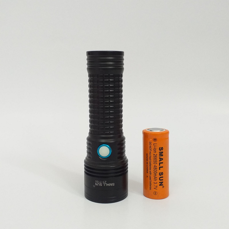 اگر به دنبال چراغ قوه ای هستید که همانند یک پروژکتور قدرتمند پرتاب نور داشته باشد و در عین حال کم حجم و دست و پا گیر نباشد چراغ قوه اورجینال T150 از برند معتبر اسمال سان بهترین گذینه برای شما است ، این چراغ قوه از لامپ ویژه و نسوز XML بهره برده است که دارای نور واید نقطه زن تا برد 850 متر است و همچنین عرض وسیعی تا حدود 5 متر را پوشش میدهد و در 3 حالت نور کم و نور متوسط و نور زیاد روشن میشود و در حالت سوم میتواند یک جاده را کاملا روشن کند ، متریال چراغ قوه نیز از آلیاژ آلومینیوم ضخیم کار شده است و دارای پوشش رنگ کوره ای مشکی میباشد و کاملا در مقابل شوک های ضربه ای و نفوذ آب یا گرد و خاک مقاوم است ، منبع تغذیه این چراغ قوه نیز 1 عدد باتری شارژی مداردار اسمال سان سایز 26650 با قدرت بینظیر 4800 mAh میلی آمپر ساعت است که تا 6 ساعت با نور زیاد و 10 ساعت با نور کم روشنایی ایجاد میکند .