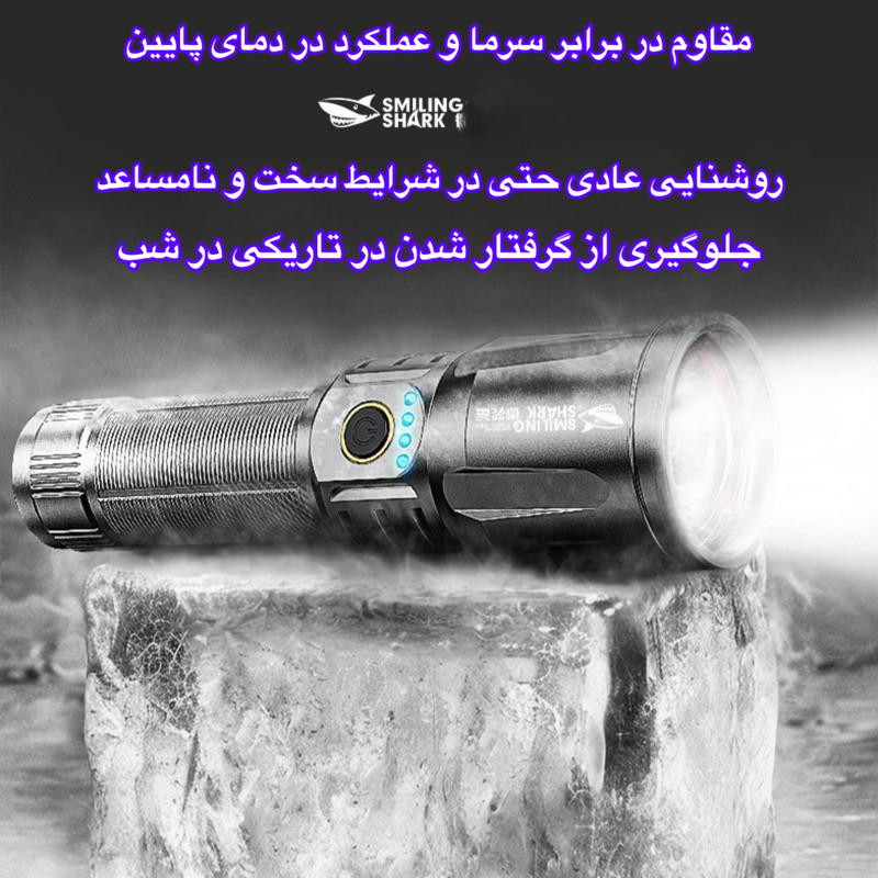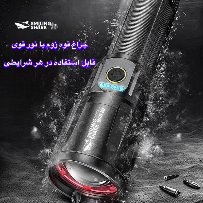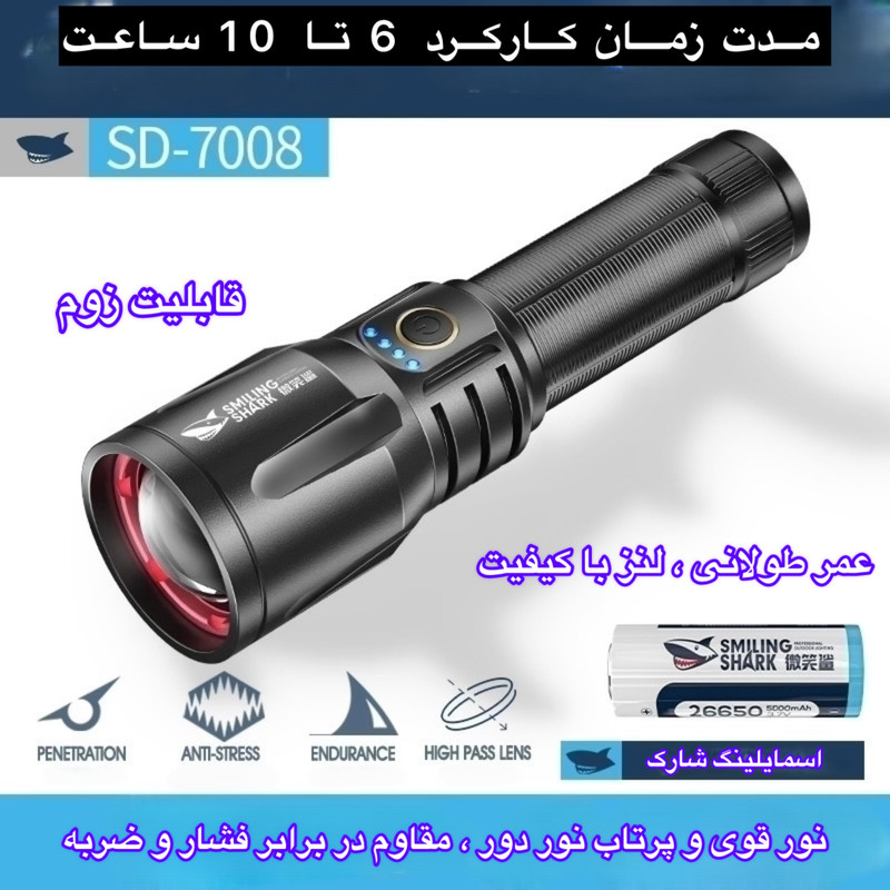 چراغ قوه اسمایلینگ شارک (Smiling Shark) مدل SD-7008 یک ابزار قدرتمند و حرفهای برای روشنایی در شرایط مختلف است. این محصول با طراحی مدرن، بدنهای مقاوم و عملکردی قابل اعتماد، انتخابی ایدهآل برای افرادی است که به دنبال نوری قوی و دوام بالا هستند.