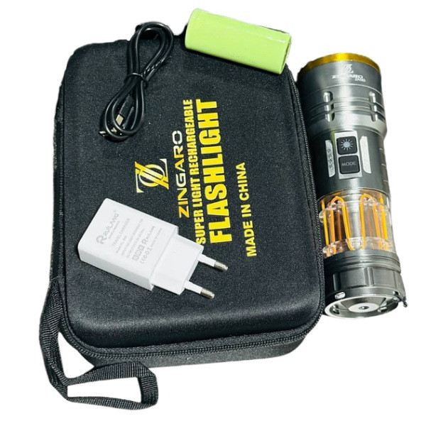 یکی از ممتازترین مدلهای چراغ قوه موجود در بازار چراغ قوه زینگارو مدل Zingaro ZA183 است که از کیفیت ساخت بالا و قدرت نوری حیرت آوری برخوردار است. این چراغ قوه حرفه ای با ویژگی های منحصر به فرد و ساختاری مقاوم انتخابی برتر برای کمپینگ و گلمپینگ ها و انواع برنامه های ماجراجویانه می باشد. چراغ قوه شارژی حرفه ای زینگارو مجهز به یک لامپ LED با نور قدرتمند و شدت روشنایی ۴۰۰۰ لومن است که محوطه های تاریک مطلق را کاملا پر نور میکند و دید وسیعی را برای افراد فراهم می آورد. شدت روشنایی فوق العاده در کنار برد نوری شگفت انگیز ۱۰۰۰ متری سبب شده همراهی مطمئن و قدرتمند برای کوهنوردان حرفه ای نیروهای امداد و نجات و طبیعت گردی شبانه باشد. این چراغ قوه از حالتهای مختلف نوردهی شامل نور زیاد (High) نور متوسط (Medium) و نور کم (Low) پشتیبانی می کند که هر کدام در شرایط خاص قابل استفاده است. همچنین در این چراغ قوه همه کاره حالت چشمک زن اضطراری (SOS/Strobe) تعبیه شده است که برای مواقع اضطراری و درخواست کمک ایده آل است. علاوه بر قدرت نوری خیره کننده ، چراغ قوه از ساختاری مستحکم و با دوام برخوردار است که در شرایط سخت محیطی مقاومت بی نظیری دارد بهره گرفتن از جنس آلیاژ آلومینیوم مقاوم این اطمینان را به شما میدهد که انتخابی با دوام برای استفادههای طولانی مدت در شرایط سخت محیطی داشته اید. یکی از امکانات ویژه این چراغ مجهز بودن به چراغ جانبی فانوسی است که روشنایی یکنواختی را فراهم می آورد و برای زمان قطعی برق یا استفاده در داخل چادر فوق العاده است. چراغ قوه کینساچ مدل zingaro za183 از نظر ظاهری فوق العاده حرفه ای مدرن و شیک طراحی شده است قسمتی از بدنه از شیشه مقاوم ساخته شده است که وجود چراغ های زرد رنگ جذابیت ظاهری چراغ قوه را دوچندان کرده است. مزیت دیگری که این چراغهای زرد رنگ دارند کمک به پیدا کردن سریع و راحت چراغ قوه در زمان تاریکی مطلق میباشد. طراحی ارگونومیک و خوش دست در کنار وزن سبک آن سبب شده به سهولت در دست جای بگیرد و در ماجراجویی های طولانی خسته کننده نباشد. جنس بدنه از آلیاژ آلومینیوم مقاوم است که در برابر ضربه و سقوط از ارتفاع متوسط مقاومت بی نظیری دارد به دلیل مقاومت بالا در شرایط سخت محیطی می توان گفت عملکرد قابل اطمینانی در ماموریت های امداد و شرایط اضطراری و موقعیتهای سخت دارد.