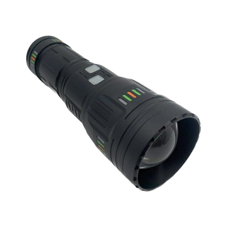 برد نور و قدرت روشنایی با برد تا 1000 متر و 5000 لومن، این چراغ قوه به شما در شرایط تاریکی کمک میکند و محیط اطراف را به درستی بررسی کنید.