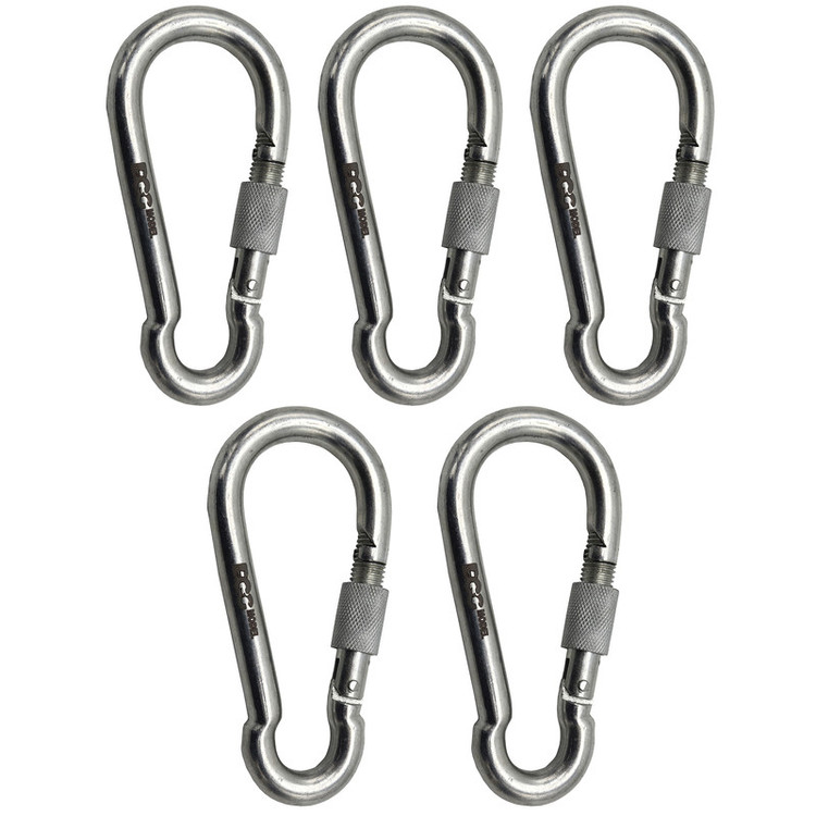 - مجموعه 5 عددی کارابین پیچی سایز 10 مدل داگ - سايز : 10 ( طول 10 سانتیمتر ) - سايز دهانه باز : 30 ميلي متر ( حدود 3 سانتیمتر) - بيضي شكل - وزن هر کدام : حدود 125 گرم