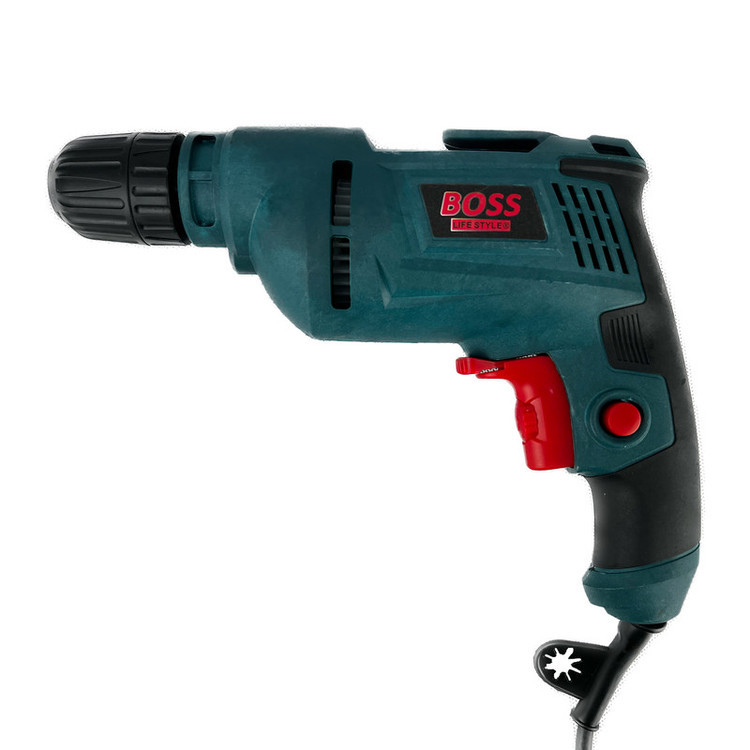 دریل برقی باس موتوری با قدرت 500 وات و سرعت حرکت آن بین 0-3500 دور در دقیقه متغیر می باشد. این دریل برقی ساده، از نوع دیمر دار بوده و می توانید سرعت آن بر حسب نیاز کم یا زیاد نمایید.به طور کلی می توان گفت دریلها از ابزارهای پر کاربردی می باشند که از آن جهت سوراخکاری سطوح مختلف می توان استفاده نمود. در انتخاب دریل باید به قدرت، سرعت، قطر مته و سه نظام آن دقت نمایید. این محصول از نوع اتومات بوده و برای تعویض مته نیاز به آچار ندارد. حداکثر قطر سوراخکاری آن نیز 10 میلیمتر خواهد بود.منبع تغذیه این محصول برق 220 ولت با فرکانس 50-60 هرتز می باشد و وزن آن معادل 1.2 کیلوگرم است و به علت وزن کمی که دارد، از خستگی کاربر در حین انجام کار جلوگیری می کند.و برای سورخ کاریهای دقیق یک تراز بالای دریل قرار گرفته است