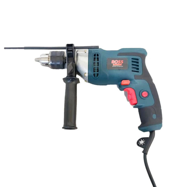 دریل ۱۳ چکشی نیم تنه فلزی باس یکی دیگر از محصولات کاربردی شرکت معتبر BOSS می باشد . مکانیزم کار در این ابزار به گونه ای است که از طریق چرخش مته در سرعت بالا می توان سوراخ کاری را انجام داد.این دریل چکشی که بصورت اصلی و پلمپ توسط ایران باس توزیع میگردد در اصل یکی از انواع دریل هایی هستند که کاربرد وسیع تری نسبت به دریل های معمولی دارد و از آنها می توان در سوراخ کاری سطوح سخت و بتنی و گچی و سنگ و سرامیک و ... استفاده کرد. دریل باس علاوه بر قابلیت سوراخ کاری به صورت چکشی با قطر و عمق بیشتر، در سوراخ کاری بتن و مصالح ساختمانی کاربرد بیشتری دارد، همچنین قابلیت پیچ کاری، به خصوص پیچهای خودکار MDF و چوب را هم داراست. یکی دیگر از از دیگر مزایای این دستگاه قابلیت استفاده بجای آچار بکس در صورت مهیا بودن تبدیل بکس و سبک بودن کار است. با وجود اینکه قابلیت دریل در سوراخ کاری بالاتر است اما دریل باس به دلیل سرعت بالاتر و همچنین تمرکز نیرو برای سوراخ کاریهای دقیقتر و کیفیت سطوح بالاتر، گزینه مناسبتری است.ازمشخصات دیگر آن عبارتند از: ۲۵۰۰ وات و نیم تنه فلزی واقعی و قابلیت چکشی و سه نظام سایز ۱۳ و دور متغیر ۳۰۰۰_۰ دور بر دقیقه(دیمر دار) و چپگرد و راستگرد و سبک و خوش دست می باشند (لطفا همیشه به اصل و پلمپ بودن محصول توجه فرمایید باتشکر ایران باس )