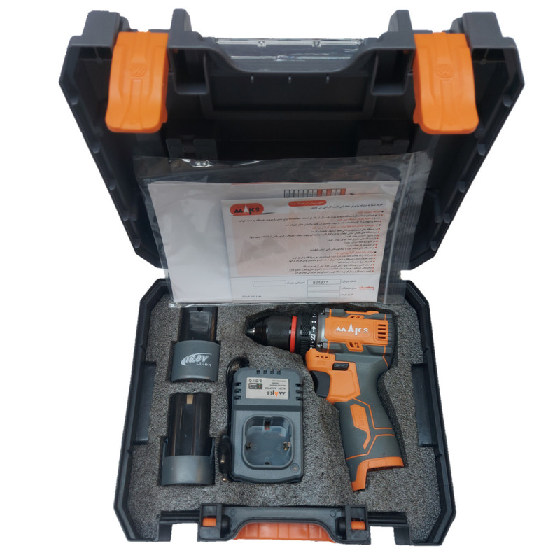 دریل شارژی براشلس مکس با دو عدد باتری 16/8 ولت می باشد.