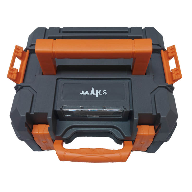 یک کیف حمل دارای دو دسته که قابلیت اتصال به دیگر کیف های مکس را روی هم دارد که میتوان با هم آنها را حمل کرد.