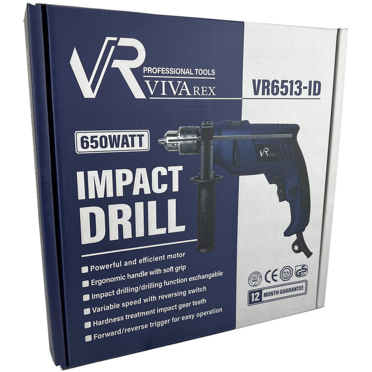 ویوارکس برندی پر آوازه در بین ابزارالات برقی و شارژی دریل چکشی فول آپشن مدل VR6513-ID را معرفی کرده. با داشتن یک موتور قدرتمند 650 واتی قادر است تا به حداکثر سرعت گردش آزادی برابر با 3000 دور بر دقیقه دست پیدا کند.سیم پیچ موتور تماما از مس درجه یک و دیمر تعبیه شده برای این محصول به کاربران این امکان را میدهد تا با توجه به نیاز خود سرعت این دریل را تنظیم نمایند. همچنین کلید تغییر جهت چرخش چپگرد-راستگرد تعبیه شده برای این محصول، این دریل را به ابزاری چند منظوره (استفاده برای پیچ بستن) تبدیل مینماید. در هر زمان که کاربران نیاز به استفاده از این دریل برای تخریب بتن و یا حفاری در آن را داشته باشند، میتوانند براحتی(توسط کلید حالت چکشی) حالت کارکرد دریل را با یک کلید تغییر دهند. در طراحی و ساخت بدنه دستگاه با بهره گیری از متریال اولیه با کیفیت و بهره گیری از ارگونومی بالا، کاربران قادر هستند تا بدون هیچگونه احساس خستگی، طی ساعات طولانی به کار بپردازند. سه نظام این محصول از نوع 13 میلیمتری فلزی آچاری بوده که تعویض مته را بیش از پیش برای کاربران آسوده کرده و بین تمامی هم رده های خود بهترین گزینه برای خرید در سایت دیجی کالا میباشد.