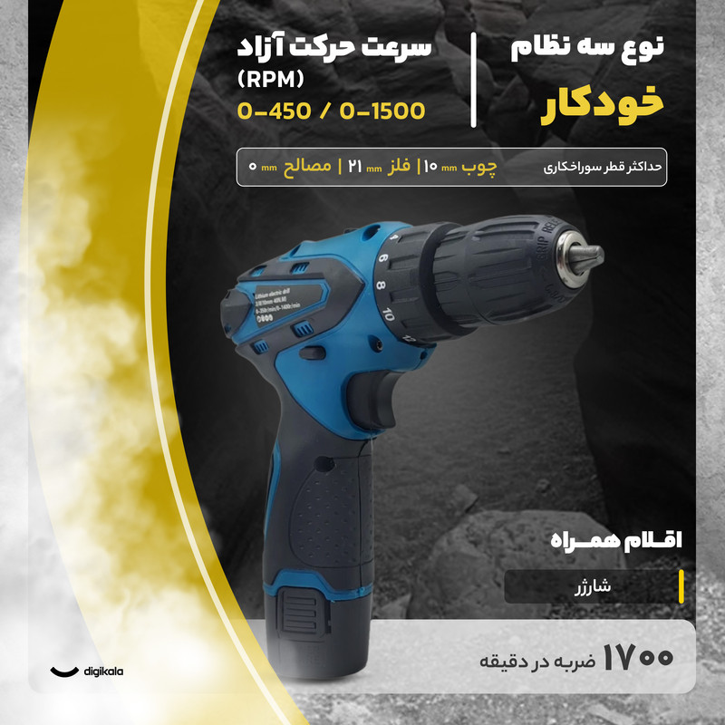 دریل پبچ گوشتی شارژی صنعتی باس مدل 18V کد 01
