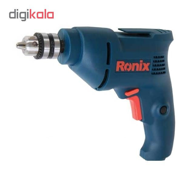 دریلها ازجمله ابزارهای کاربردی محسوب میشوند که وجود آنها در هر خانهای موردنیاز است. این دستگاهها انواع بسیار گوناگونی دارند و برای انجام کارهای مختلفی مورداستفاده قرار میگیرند. درصورتیکه به شکلی حرفهای با دریل کار نمیکنید، میتوانید دریلی ساده را تهیه کرده و در مواقع موردنیاز از آن استفاده کنید. محصولی که در تصویر مشاهده میکنید برای چنین منظوری بسیار مناسب است. این دستگاه دریل شرکت «رونیکس» (Ronix) است که تحت عنوان «2106» تولید میشود. این دریل توانی برابر 350 وات داشته و با برق شهری کار میکند. سرعت گردش این دستگاه 3600-0 دور بر دقیقه بوده و با کمک کلیدی میتوانید جهت چرخش آن را تغییر دهید. این دستگاه وزن سبکی برابر 1.3 کیلوگرم دارد و بر اساس استاندارد CE (استاندارد اروپا) تولید میشود. شرکت رونیکس برای راحتی بیشتر کاربر، این دستگاه را به قفل سوییچ مجهز کرده است. با کمک این کلید، دیگر نیازی به نگهداشتن شاسی دریل برای سوراخکاری ندارید، سهنظام دستگاه بهطور مداوم میچرخد و شما با تسلط و قدرت بیشتری میتوانید عمل دریلکاری را انجام دهید. سهنظام این دریل از نوع 6.5 میلیمتری بوده و برای باز و بسته کردن مته باید از آچار استفاده کنید. این محصول در برابر گردوغبار نیز عایق است.
