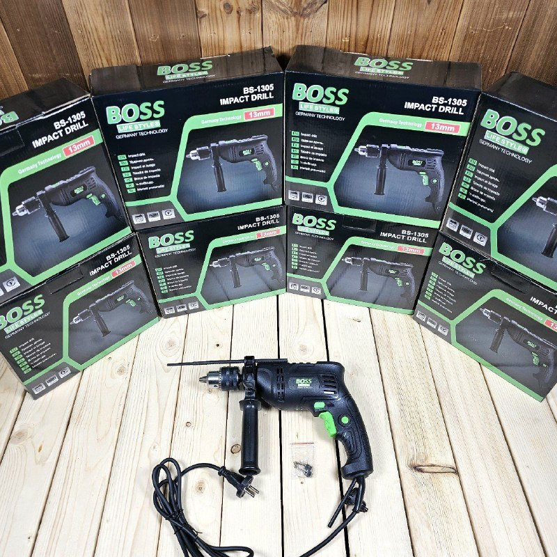 دریل چکشی باس که یکی از انواع ابزار های برقی دریل هستند که از آنها برای سوراخ کاری و پیچکاری استفاده می شود. مکانیزم کار در این ابزار به گونه ای است که از طریق چرخش مته در سرعت بالا می توان سوراخ کاری را انجام داد. دریل چکشی در اصل یکی از انواع دریل ها هستند که کاربرد وسیع تری نسبت به دریل های معمولی دارد و از آنها می توان در سوراخ کاری سطوح سخت و بتنی و گچی و سنگ و سرامیک و ... استفاده کرد. دریل باس علاوه بر قابلیت سوراخ کاری به صورت چکشی با قطر و عمق بیشتر، در سوراخ کاری بتن و مصالح ساختمانی کاربرد بیشتری دارد، همچنین قابلیت پیچ کاری، به خصوص پیچهای خودکار MDF و چوب را هم داراست. یکی دیگر از از دیگر مزایای این دستگاه قابلیت استفاده بجای آچار بکس در صورت مهیا بودن تبدیل بکس و سبک بودن کار است. با وجود اینکه قابلیت دریل در سوراخ کاری بالاتر است اما دریل باس به دلیل سرعت بالاتر و همچنین تمرکز نیرو برای سوراخ کاریهای دقیقتر و کیفیت سطوح بالاتر، گزینه مناسبتری است. دریل BOSS ابزاری است الکتریکی، که برای سوراخ کردن سطوح به کار میرود. دریل را با توجه به قدرت آن و نیز با استفاده از مَتّه مناسب، می توان برای سوراخ کردن چوب، فلز و بتن به کار برد. با پیشرفت ابزارها، امروزه نه تنها برای سوراخکاری، بلکه با اضافه کردن قطعاتی دیگر، میتوان امکاناتی مانند ساییدن، گردبر، عمودبر و… را هم به این دستگاه اضافه کرد. این دریل برای کارهای خانگی ، کارگاهی،تعمیرگاهی،ساختمانی و نصب و مونتاژ استفاده می شود.