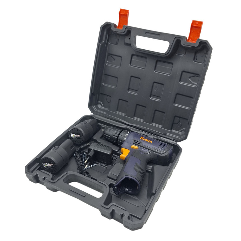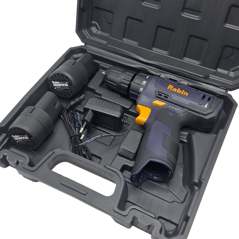 دریل پیچ گوشتی شارژی سه نظام 10 میلی متری 12 ولت دو باتری رابین مدل RR8612 مجموعه 5 عددی