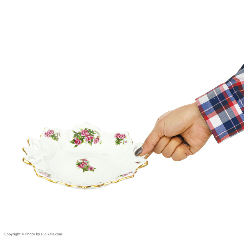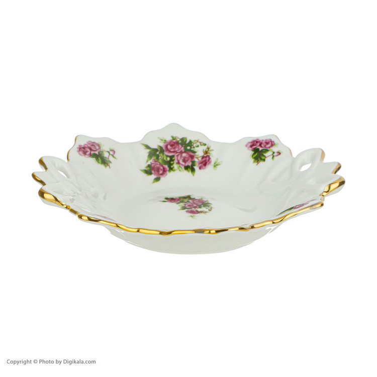 شیرینی خوری پاپیونی مقصود طرح گل سرخی با پخت کوره ای و رنگ ثابت پرمصرف مناسب شکلات و شیرینی