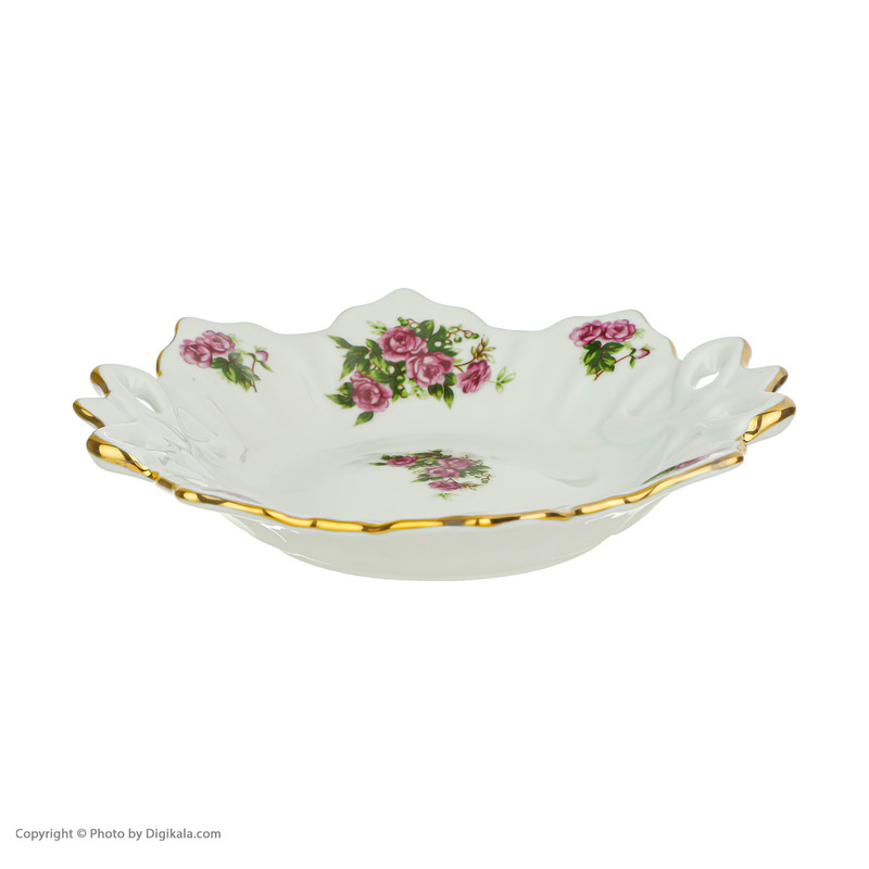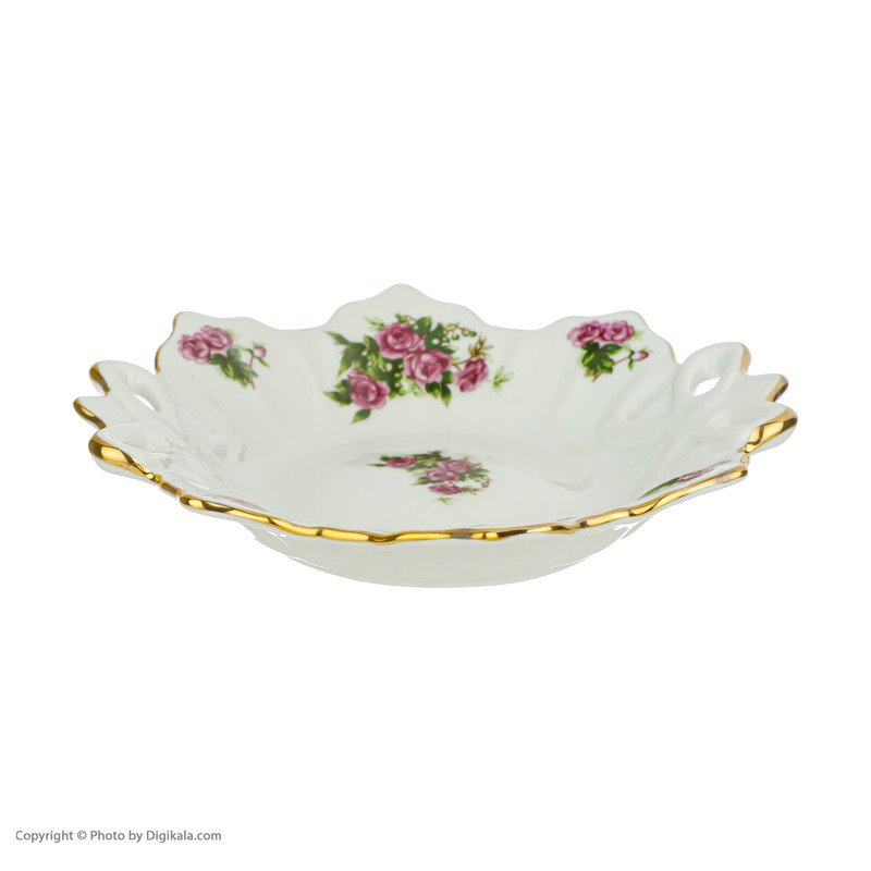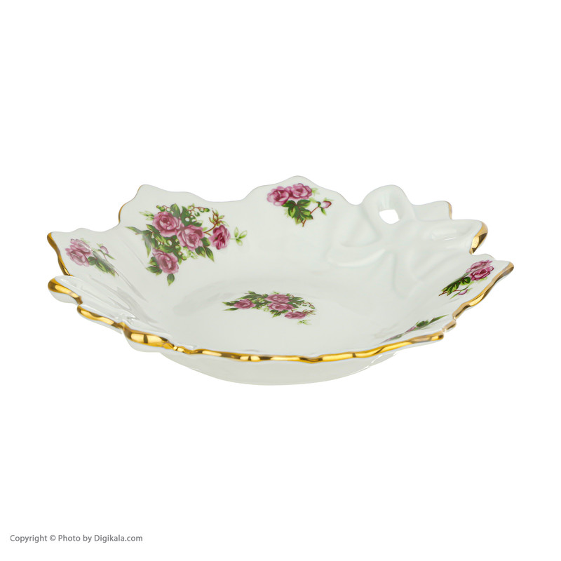 شیرینی خوری پاپیونی مقصود طرح گل سرخی با پخت کوره ای و رنگ ثابت پرمصرف مناسب شکلات و شیرینی