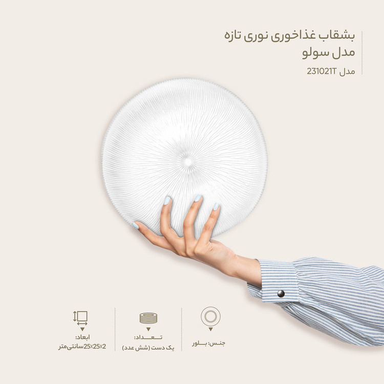 بشقاب غذاخوری نوری تازه مدل سولو 231021T بسته 6 عددی