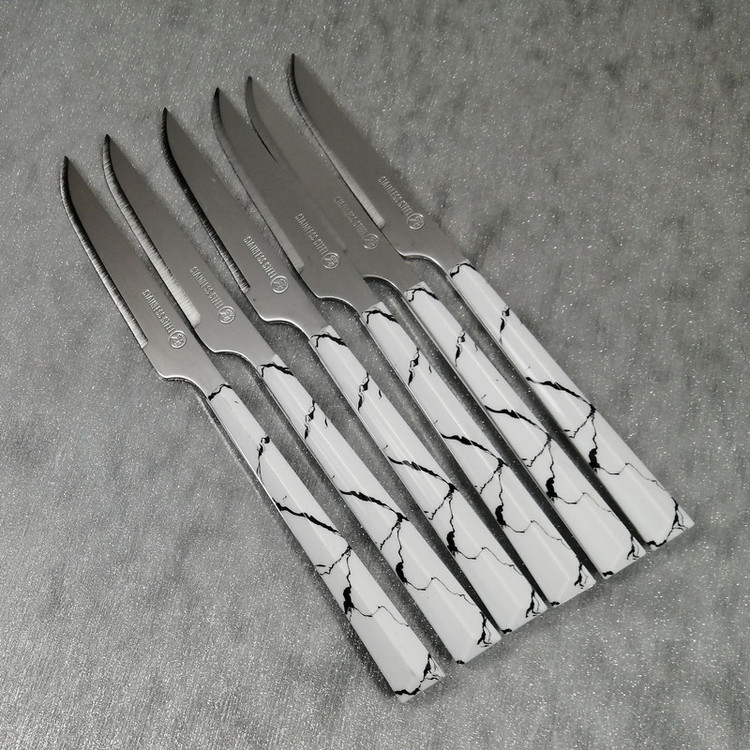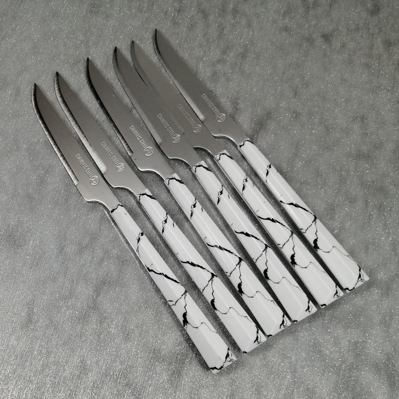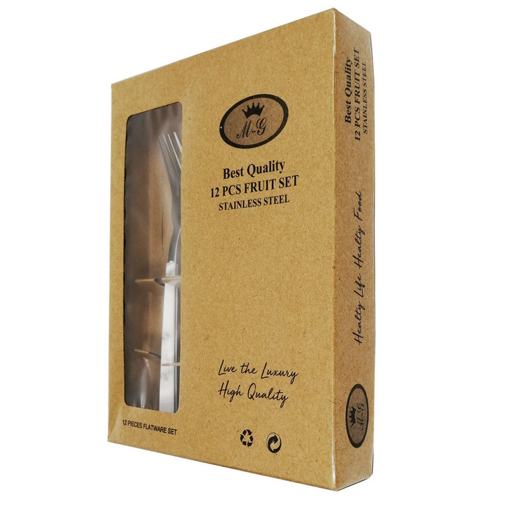 شامل 6 عدد کارد میوه خوری + 6 عدد چنگال میوه خوری. دارای تیغه تیز و برنده.
