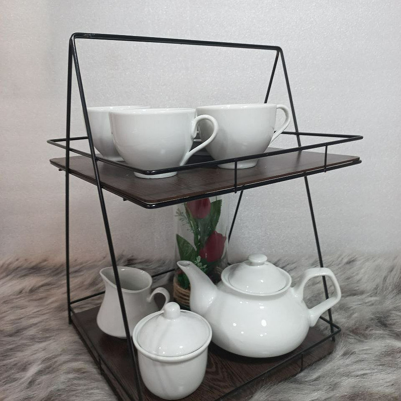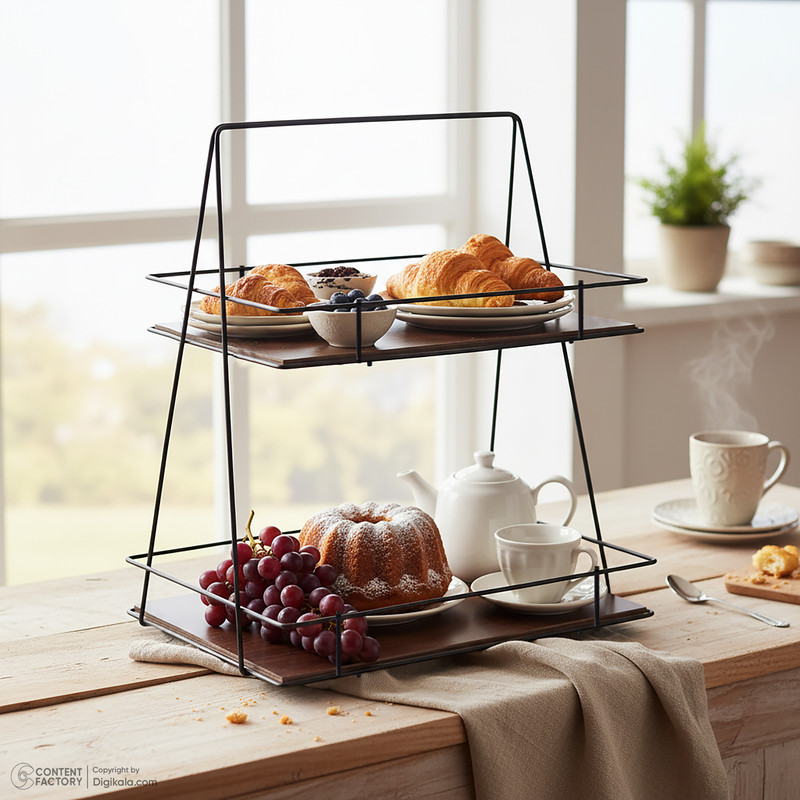 استند پذیرایی مدل دو طبقه کف چوبی