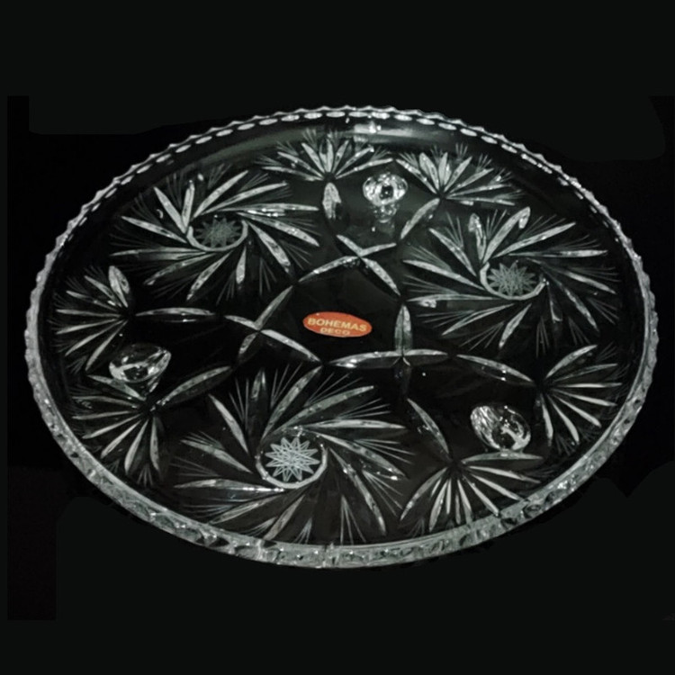 یک عدد شیرینی خوری بزرگ کریستال سه پایه 30 سانتی متری دکو بوهمیا مدل خورشیدی گلکسی استار کد 755